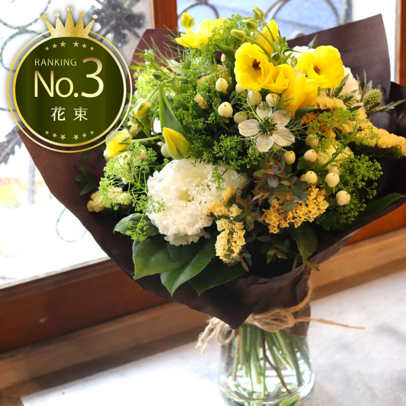 人気のあるナチュラルなお花を組み合わせた、透明感がある素敵な花束です ちょっとしたプレゼントにちょうど良いサイズ感です ※花瓶はついておりません