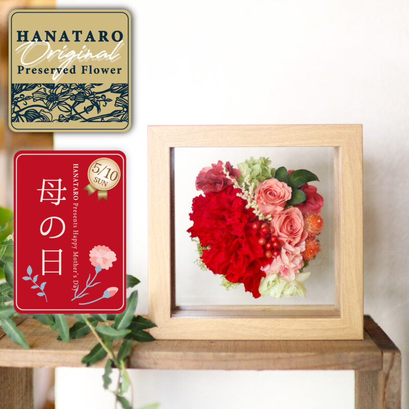 【HT018】Blooming Frame「母の日」プリザーブドフラワー レッド
