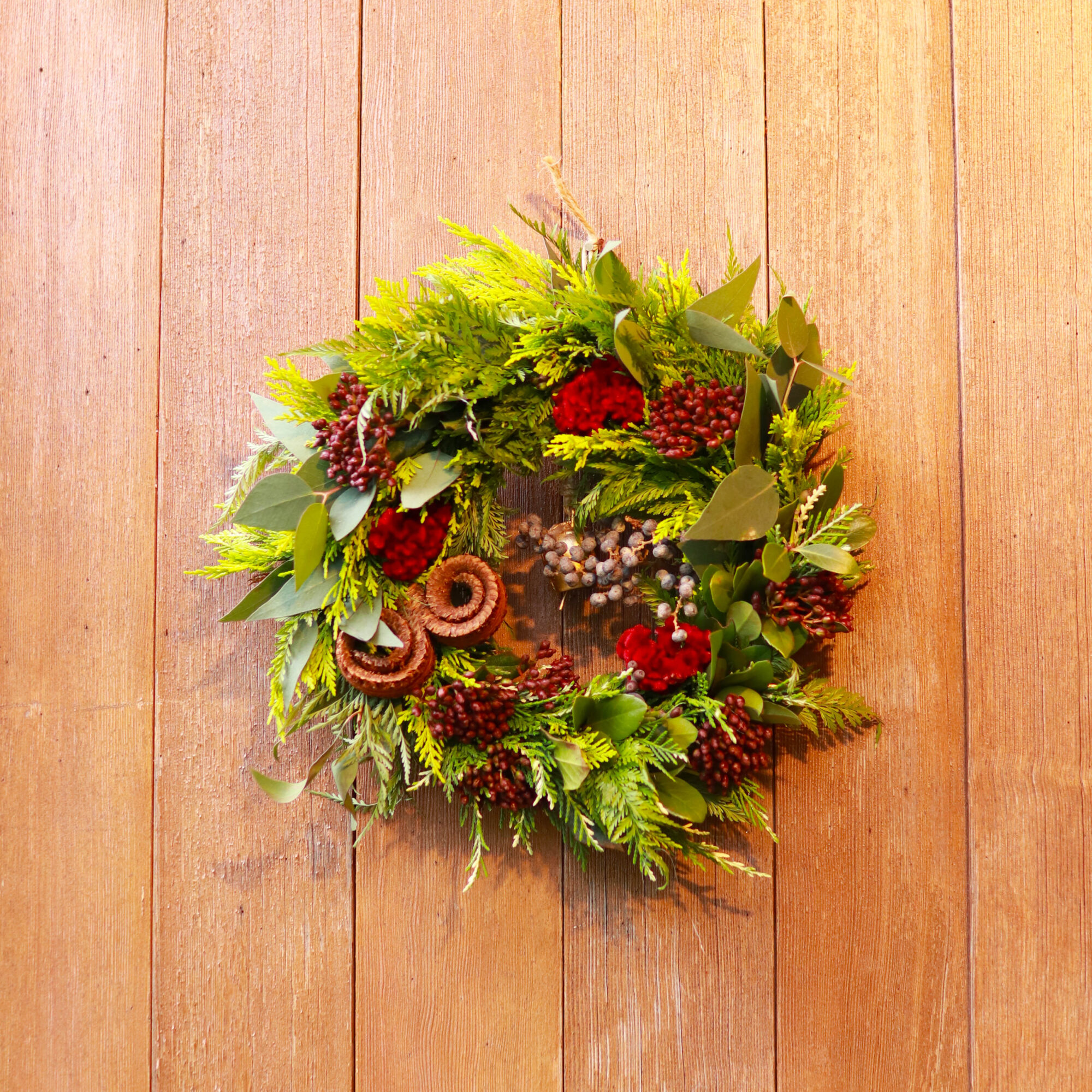 ナチュラルな雰囲気が魅力のクリスマスリースは、全てオリジナル商品です。