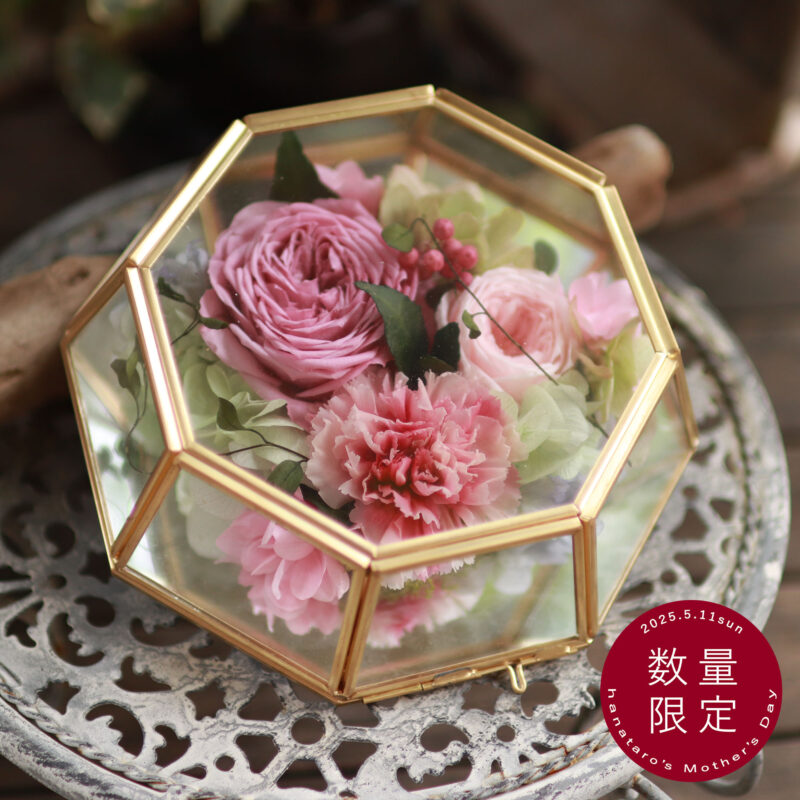 ピンクバラで作った母の日のプリザーブドフラワー ガラスケース